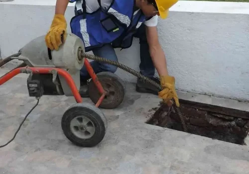 Uso de máquina eléctrica tipo "víbora" o máquina rotatoria para liberar obstrucciones internas en tuberías.
